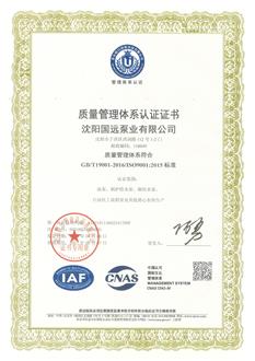 本公司在同行業(yè)中率先取得了ISO9000質(zhì)量體系認(rèn)證、GB/T24001環(huán)境管理體系認(rèn)證、GB/T28001職業(yè)健康安全管理體系認(rèn)證,并獲得了國(guó)家所要求的各種泵類(lèi)產(chǎn)品的生產(chǎn)許可證和煤礦安全標(biāo)識(shí)認(rèn)證。其中30多種產(chǎn)品榮獲了中國(guó)質(zhì)量技術(shù)監(jiān)督局“質(zhì)量穩(wěn)定放心、消費(fèi)者首選品牌”等榮譽(yù)稱(chēng)號(hào),并被中國(guó)產(chǎn)品保證中心確認(rèn)為“中國(guó)質(zhì)量信譽(yù)雙保障示范單位”和中國(guó)質(zhì)量誠(chéng)信協(xié)會(huì)評(píng)定的“全國(guó)質(zhì)量誠(chéng)信AAA級(jí)品牌企業(yè)”。